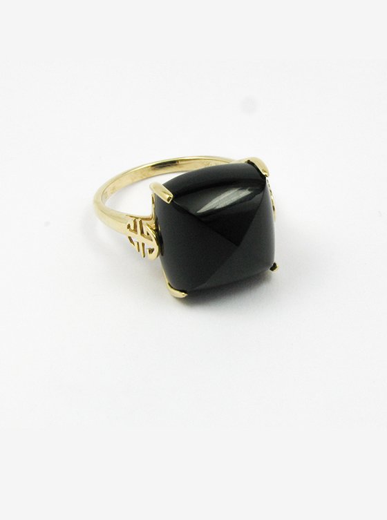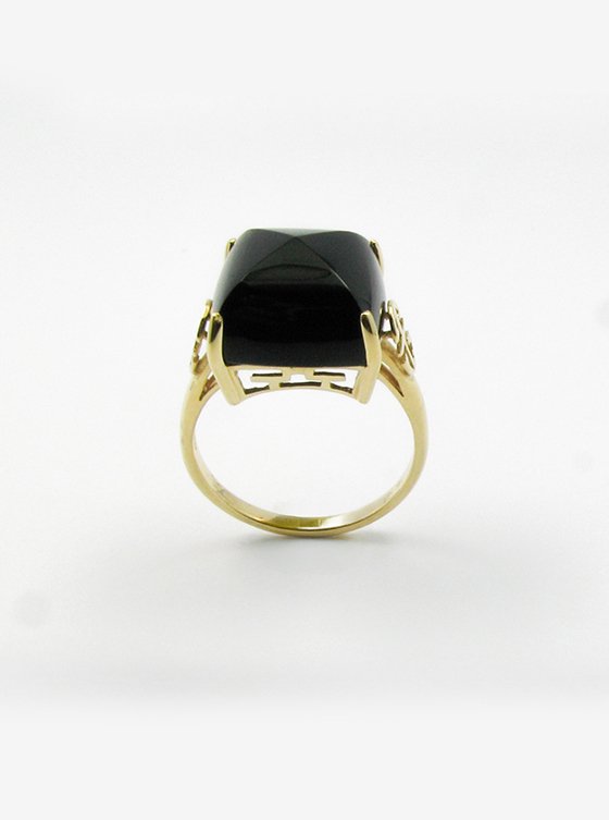 Black Agate Ring in 14K Yellow Gold